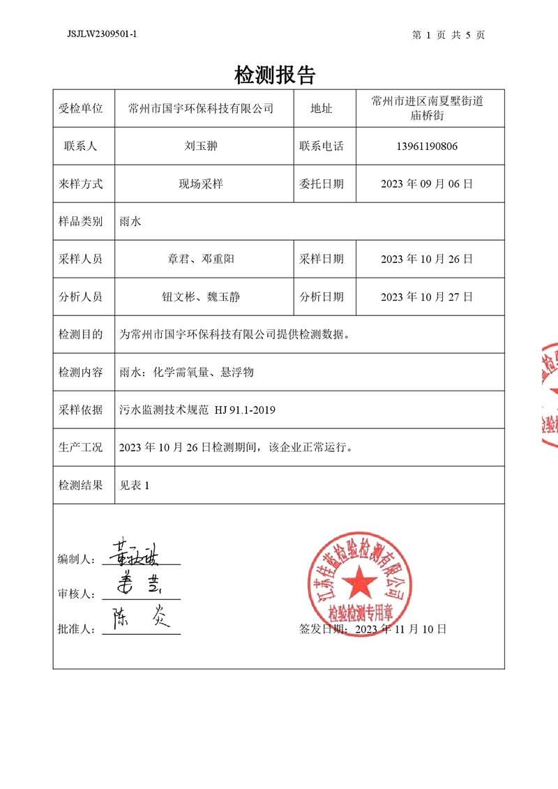 雨水檢測報(bào)告